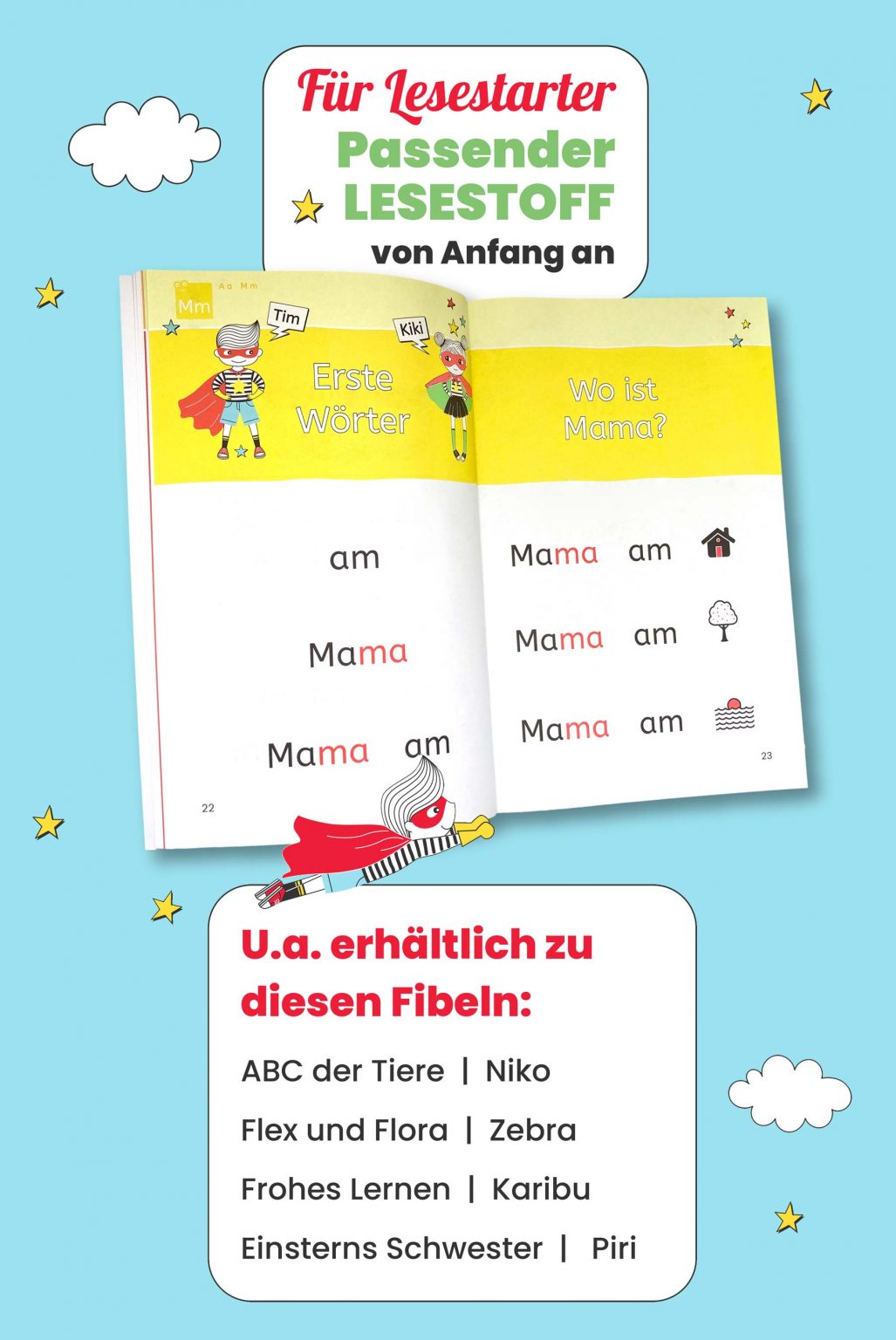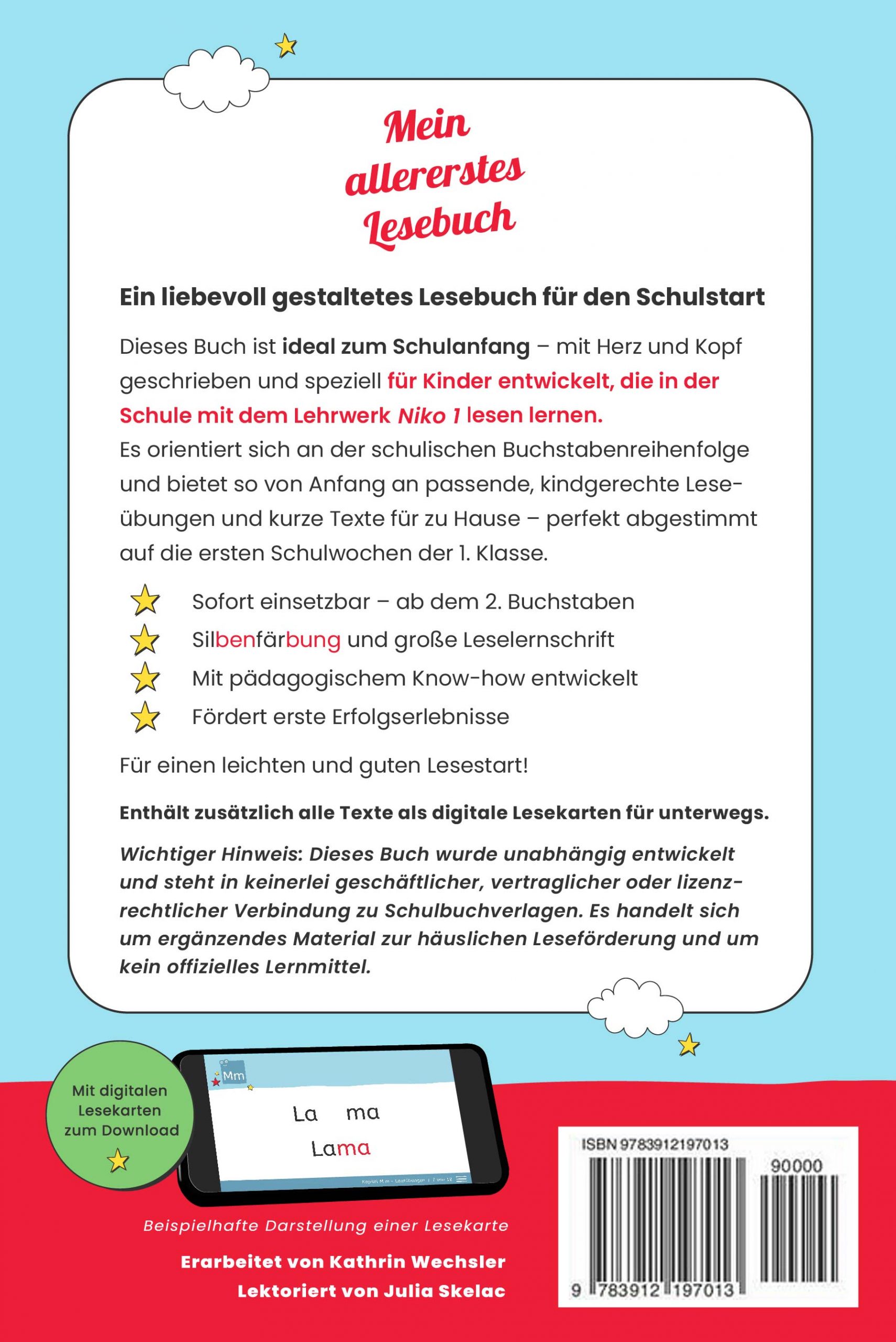 TiKie Lesestarter und "Mein allererstes Lesebuch": Frustfrei und erfolgreich lesen lernen! Das Bild zeigt Seiten des Buchs. Es istschön bunt und  liebevoll illustriert mit Superleseheld Tim und einem Lama. Außerdem sind alle Silben farbig markiert, was das Lesenlernen erleichtert."Mein allererstes Lesebuch" bietet passenden Lesestoff von Anfang an. Das allererstes Buch für Lesestarter. "Mein allererstes Lesebuch": Perfekt zum Üben für zukünftige Superlesehelden.<br>"Mein allererstes Lesebuch" ist unter anderem zu diesen Fibeln erhältlich: ABC der Tiere, Niko, Flex und FLora, Zebra, Frohes Lernen, Karibu, Einsterns Schwester, Piri."Mein allererstes Lesebuch" ist innovativ & flexibel, denn es enthält alle Texte als digitale Lesekarten. So kann man überall und jederzeit am Smartphone lesen üben.<br>Mein allererstes Lesebuch – Mit digitalen Lesekarten zum Download!Die Autorin: Kathrin Wechsler studierte Multimedia und Kommunikation und arbeitete viele Jahre im Design und Online-Marketing. Als ihr ältester Sohn 2022 eingeschult wurde, stellte sie fest, dass es für das erste Schulhalbjahr in der 1. Klasse keinen passenden Lesestoff gab – ein Missstand, denn ein guter Lesestart ist entscheidend. Um diese Lücke zu schließen, entwickelte sie Mein allererstes Lesebuch – ergänzt durch digitale Lesekarten für unterwegs. <br>Mein allererstes Lesebuch ist<br>- durchdacht und erprobt<br>- mit Herz & Kopf geschrieben<br>- für das erste Schulhalbjahr in der 1. Klasse<br>- mit pädagogischem Know-How lektoriert<br>enthält motivierende & kindgerechte Texte